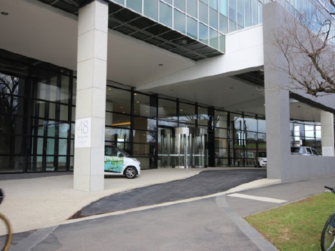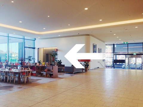 From the carpark take any lift to exit at the ground floor. Next make your way to the 48 Flemington Road lifts. They are situated next to the lounge area of the Larwill Studio